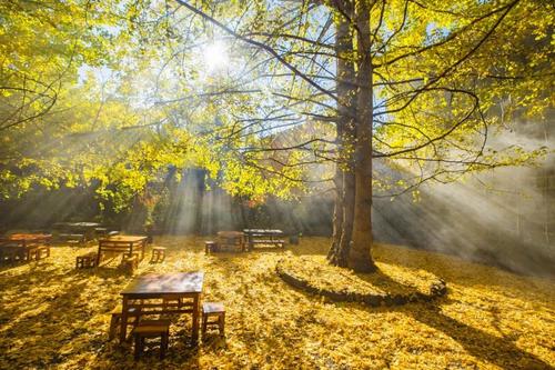 早起晨拍晨曦中的銀杏村,陽光透過樹葉縫隙投下美麗的斑駁光影,整個村莊都掩映在一片金黃中,順著村間小路繞行,一棵棵古銀杏樹像優雅的舞者一般,在風中搖曳,婀娜多姿,千百年來,村子里的居民就生活在這金黃色的的秘境里,過著溫馨、和諧的日子……白天安排時間前往國殤墓園(自愿前往)日落還是在銀杏村拍攝,中間我們會安排拍攝傳統手工技藝油紙傘制作過程。