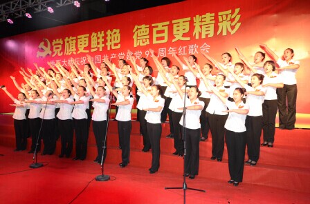 《沒有共產黨就沒有新中國》、《團結就是力量》、《走向復興》等一曲曲經典的紅色旋律激起了全體德百員工的共鳴,抒發了廣大員工熱愛黨、熱愛祖國、熱愛企業的紅色情懷,充分展示了德百人積極向上、昂揚奮進的良好精神風貌,深刻表達了對黨、對祖國母親的無限熱愛和美好的祝福。