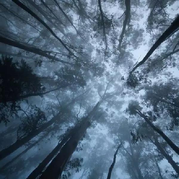 不同的角度拍攝的畫面傳達的信息不同。同一種事物,因為觀看的角度不同就會產生不同的心理感受。仰拍霧霾中的樹林,一顆顆高大的樹木向上伸去,卻在交匯處漸漸隱去,霧霾產生的混沌穿過樹葉枝杈一瀉而下,產生了異常迷人的細節,光和煙霧。