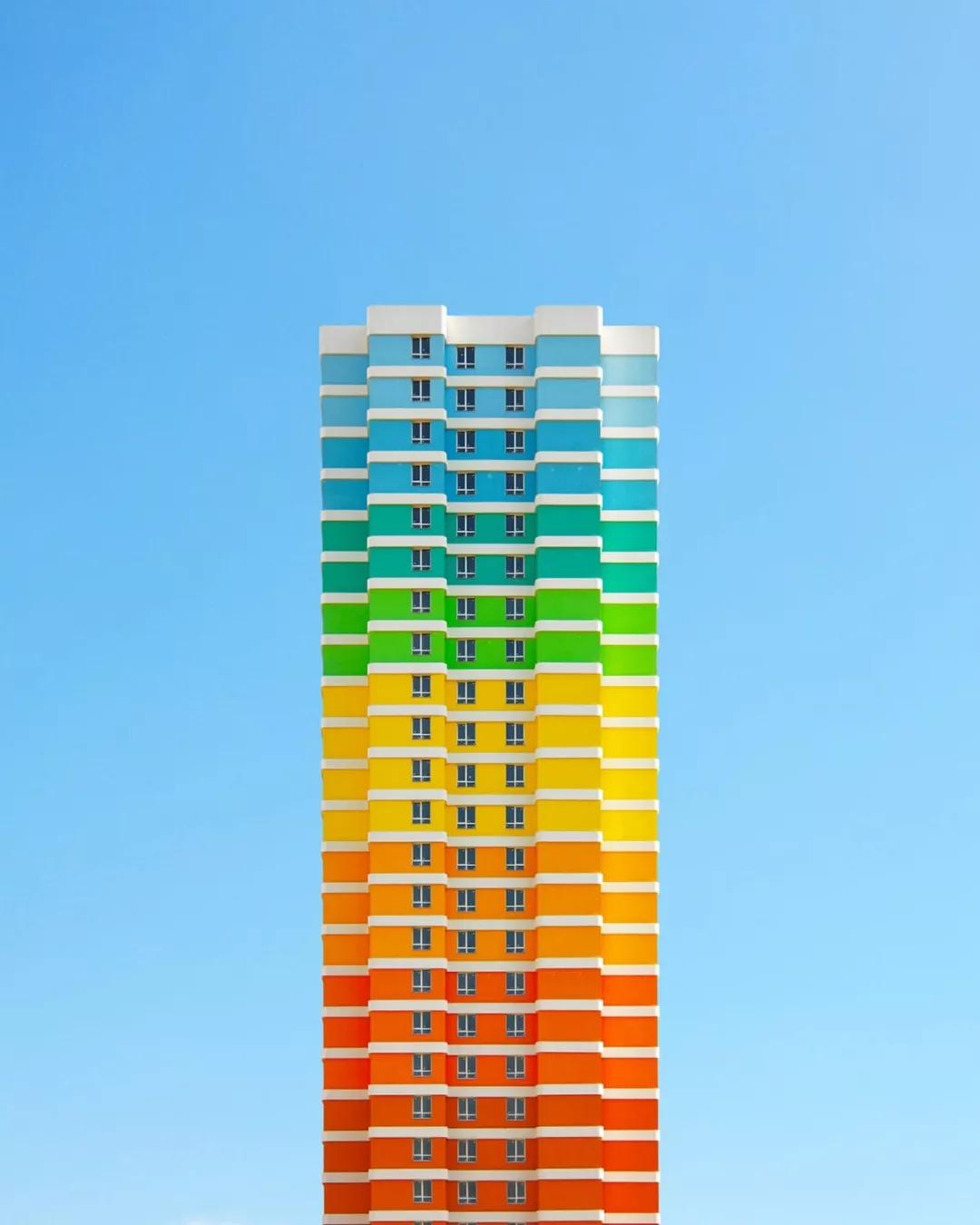 托倫把他對建筑設計和攝影的喜愛完美的結合在了一起,他所拍攝的彩虹建筑就像是從電影中截取出來的圖片。