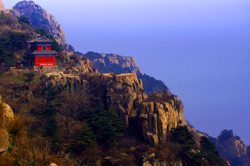 朋友們,一千多年前詩仙李白登臨泰山,當他看到眼前壯美的景色由衷地發出了這樣的感慨:天門一長嘯,萬里清風來。此時此刻,在感受著呼嘯的山風,欣賞著眼前美景同時,我們看到的這座紅色建筑便是泰山南天門。