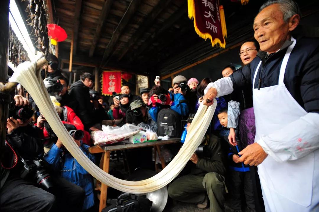 古時(shí),安昌的百姓會(huì)在安昌老街上裹粽子、灌臘腸、舂年糕、扯白糖,還會(huì)在臨河戲臺(tái)上演社戲、越劇、蓮花落等表演,以寬慰四方客人的思鄉(xiāng)之情。