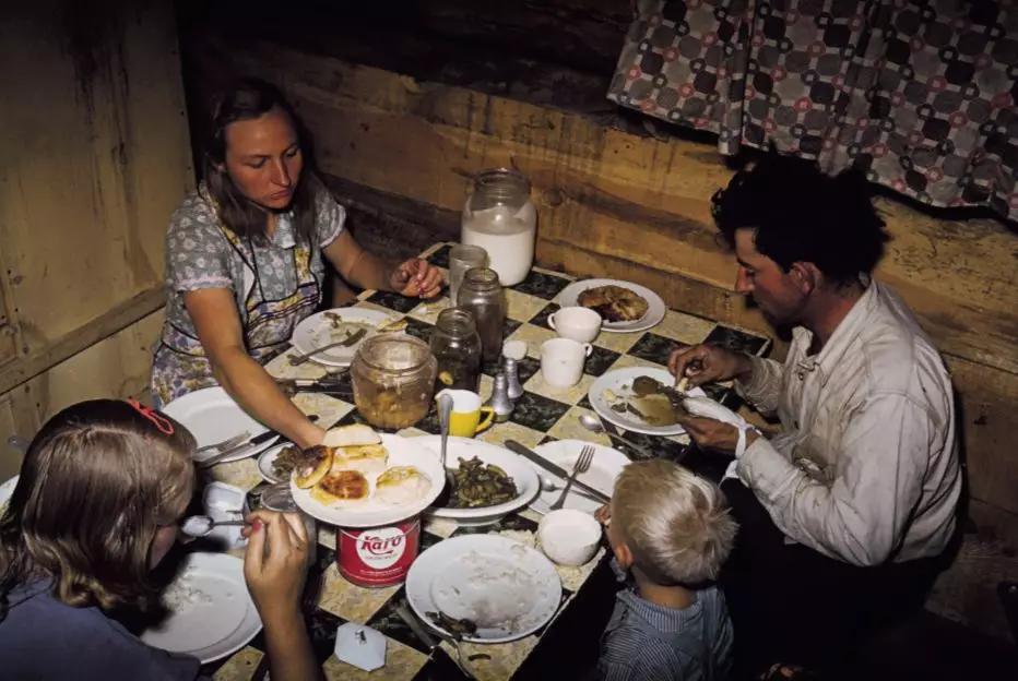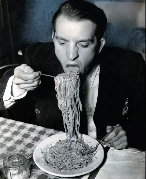 比如,維吉(Weegee)拍攝的《菲利普·斯塔佐在 WPA 上享受他最喜歡的食物,因為他聽說軍隊不太喜歡供應意大利面》(Phillip J. Stazzone is on WPA and enjoys his favourite food as he'sheard that the Army doesn't go in very strong for serving spaghetti. 1940)以他慣常的戲劇化表達讓一副普通境界的吃相躍然紙上。維吉鏡頭下的美國在 1940年尚有一盤意大利面,拉塞爾·李(Russell Lee)在同一年份走入美國新墨西哥州的鄉下,便還能看見大蕭條最后的尾聲:小城市普通美國家庭并不豐盛的晚餐。20年后,同樣在美國,食物上的局促有了很大改觀,但更直觀的窘境達到了高峰: 種族問題。佚名攝影師拍下的《午餐吧臺的罷工》(Lunch Counter Sit-in) 即顯示了這個問題。兩名美國黑人大學生在“只準白人” (whites-only)的餐廳吧臺上學習,兩名白人女服務員在觀望他們的同時拒絕為他們服務。冰冷拒絕且帶怒意,是非常純粹的仇恨表情。四個人,圍桌,卻沒有可供享用的食物。種族主義作為曾經橫亙在他們之間無形的高墻,直到今天都還有殘垣斷壁留存,化為低矮的絆腳石。