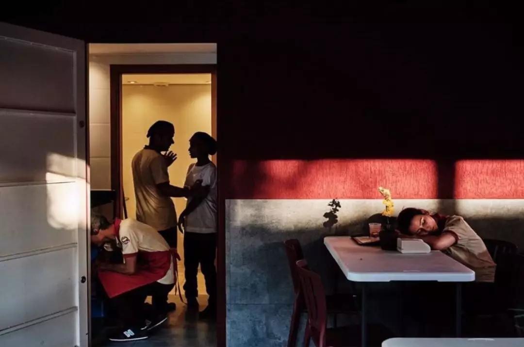 不是所有帶線(xiàn)條的建筑都會(huì)出彩,這時(shí)可以選擇通過(guò)光影來(lái)增加“面”的內(nèi)容。就像下面這樣,磚房本身很普通,等到路燈亮起來(lái),秋千架,玩秋千的人一出現(xiàn),畫(huà)面就活潑起來(lái)。