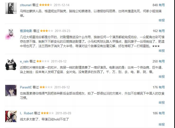 一般的電影都會由主角來推動劇情發展,當凱特.溫絲萊特扮演的雷厲風行的CDC官員米爾斯醫生出場時,觀眾會以為她是主角。然而隨著米爾斯的犧牲,你會發現在疫情面前,在大自然面前,人類如此渺小,沒有誰能力挽狂瀾。推動事情發展的只有疫情本身而已……而人類所能仰仗的是堅持抵抗的勇氣以及運氣。
