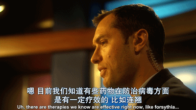 網絡大V開始造謠,并且宣稱“連翹”對病毒有效!(而實際上裘德洛扮演的網絡大V跟對沖基金合謀利用恐慌炒作股票)