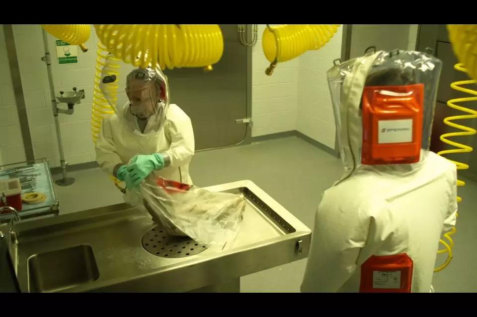 實驗室第一時間分離出這種全新的病毒,并完成基因測序。影片中的病毒是在蝙蝠和豬體內發生的變異。
