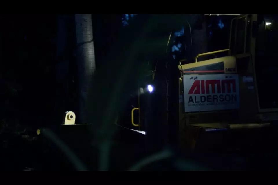 一輛重型推土機推倒了叢林里的樹木(注意LOGO,一號病人簽的文件,和空無一人的寫字樓里都出現了這個LOGO。暗示人類公司的開發活動對大自然的侵犯,最終導致了自身的災難)