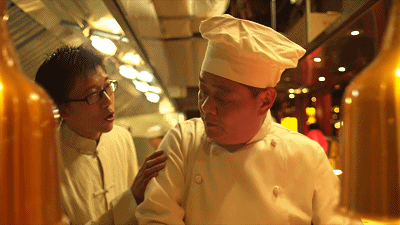 正在處理食材的廚師被邀請去見投資本地的大公司高管。
