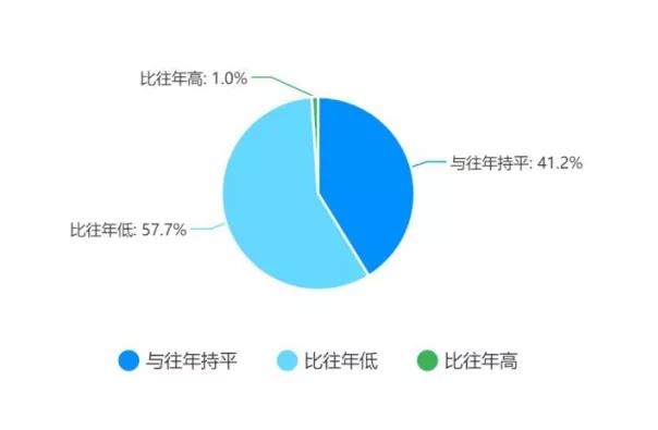 根據(jù)數(shù)據(jù)可以看出,57.7%的企業(yè)返工率預(yù)計(jì)比去年低,41.2%的企業(yè)預(yù)計(jì)返工率比去年相比持平,所以可以看出返工率受到較大影響、接近60%的企業(yè)不能準(zhǔn)時復(fù)工,不僅對抗擊疫情的物資供應(yīng)可能造成影響,更可能會影響企業(yè)的正常運(yùn)轉(zhuǎn),較大地增加企業(yè)的運(yùn)營壓力。