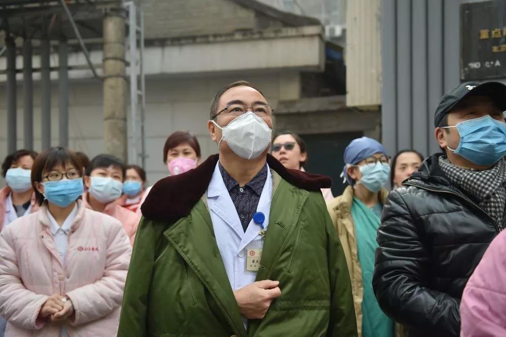 1月26日,北京醫院的醫護人員目送援鄂抗疫醫療隊隊員。