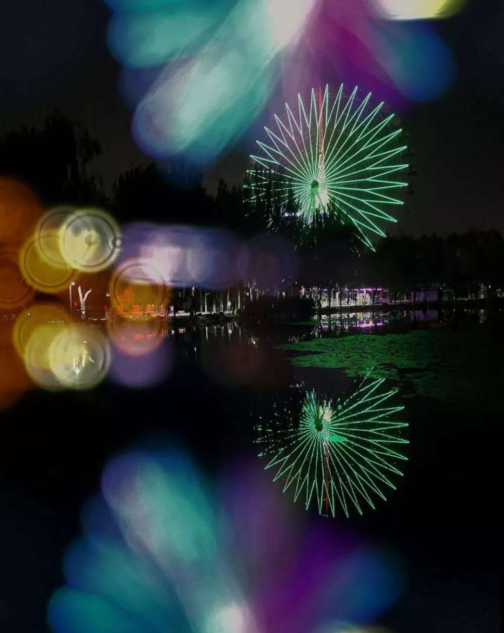 夜景時多次曝光的應用。多重曝光技法,在夜間攝影里也有很重要的應用。晚上的燈光漂亮,但天空是片漆黑;黃昏的天空很美,但燈泡卻沒打開。而用雙重曝光,你就可以二者兼顧了。先拍一張日落的鮮艷天空,和漆黑的剪影化地面;再拍一張入夜后華麗燈火和漆黑夜空,然后把它們疊加一起即可。多重曝光在夜景中的另一個應用,是在畫面中添加散景效果,操作很簡單,拍一張正常的夜景,再專門拍一張散景,進行疊加即可。