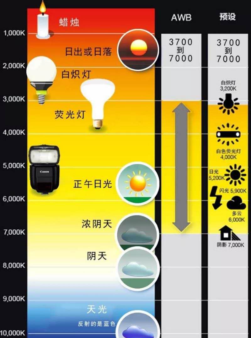 說到色溫一定要說說什么是白平衡,白平衡的概念涉及到色彩學(xué)的知識,作為初學(xué)者也不需要了解過深。只要明白白平衡是為了還原“白就是白”,也就是說使您的照片更趨于人的視覺習(xí)慣。比如,我們在白熾燈燈光的房間內(nèi)拍攝人物,如果白平衡調(diào)整不好,就容易偏色,出現(xiàn)紅臉,設(shè)置適當(dāng)?shù)陌灼胶庾屓四樋瓷先シ弦曈X習(xí)慣,這就是使用白平衡的體現(xiàn)。白平衡調(diào)整可以手動也可以自動(AWB),也可以通過后期Camera raw工具調(diào)整白平衡,也可以利用色溫進(jìn)行藝術(shù)創(chuàng)作。