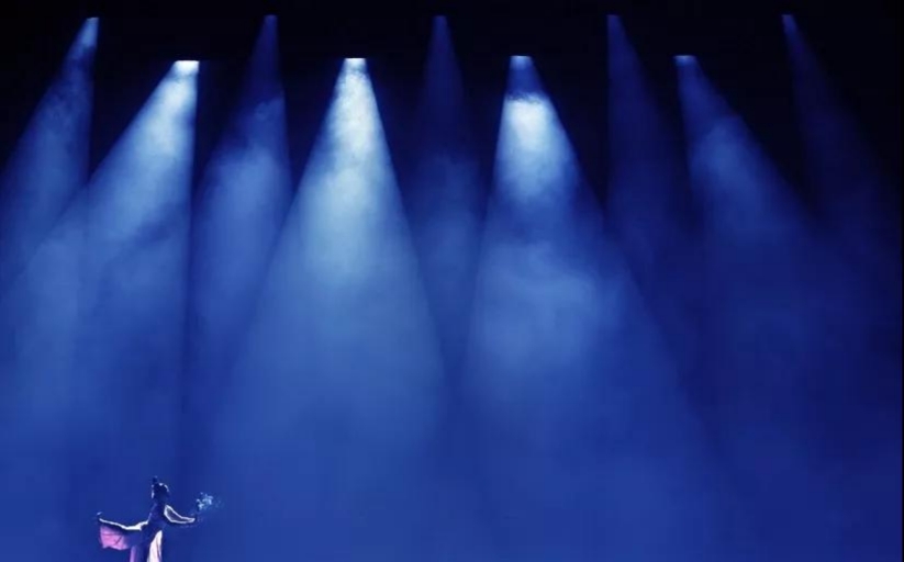 舞臺的藍(lán)色光打在演員的紅色衣服變成了紫色調(diào)