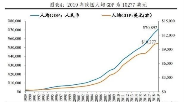 2019年中國人均GDP為70892元,較上年名義增長5.7%;人均GNI(國民總收入)為70602元。以美元計價,我國2019年人均GDP為10277美元,人均GNI為10234美元,處于中等偏上收入經濟體行列。按世界銀行標準,高收入國家人均GNI門檻為1.24萬美元。中國如果能夠轉型成功,按照5%左右的速度再增長4年左右,大約在2023年前后中國將跨越中等收入陷阱、跨入高收入國家俱樂部。一個14億人口的超大型經濟體從起飛、轉型、到跨越,這將是人類經濟增長史上的奇跡。