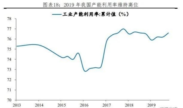 “三去一降一補”成果穩固。去產能方面,2019年全國工業產能利用率為76.6%,較上年提高0.1個百分點。其中,黑色金屬冶煉壓延加工業及煤炭開采洗選業產能利用率分別為80%和70.6%,分別比2018年提高2和0個百分點,均為近幾年來最高水平。去庫存方面,2019年末商品房待售面積49821萬平方米,較去年減少2593萬平方米,相當于2013年末的水平。