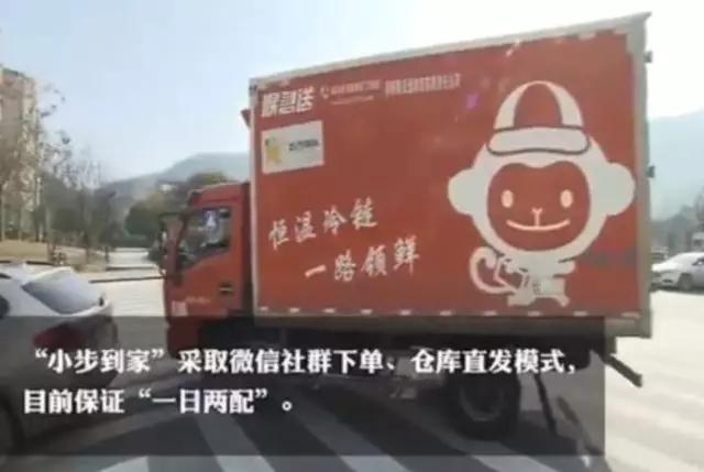 “小步到家”是采取微信社群下單、倉庫直發(fā)模式——每個(gè)小區(qū)征集一名住戶作為團(tuán)長,每個(gè)小區(qū)的團(tuán)長既是“消費(fèi)者”也是“銷售員”。
