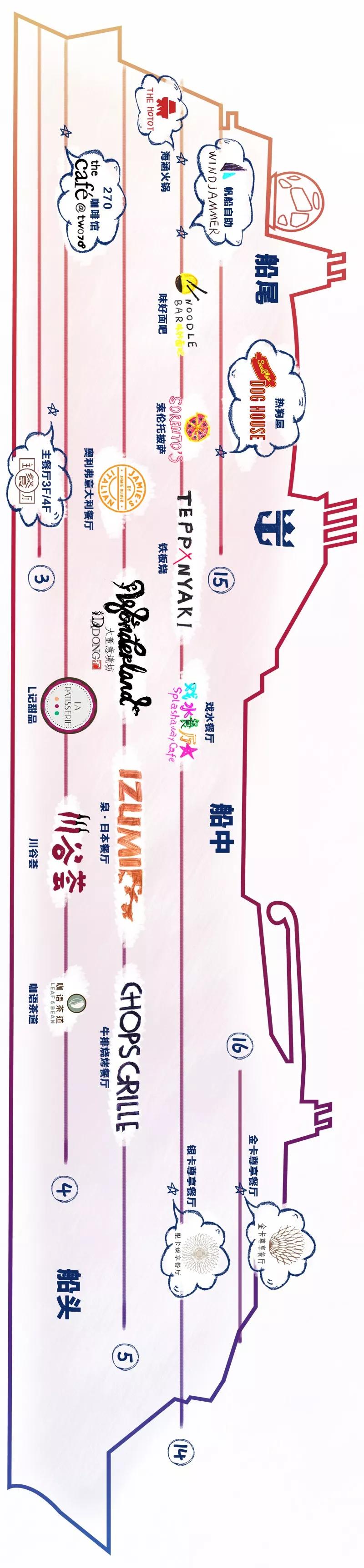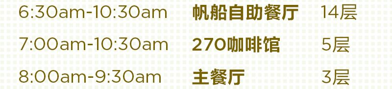 早餐你可以任選以上三家餐廳,有自助也有點餐,滿足你不同的早餐需要,強小花貼心提示:船上超多好玩項目,只要吃飽了才有力氣一個個玩過來哦~