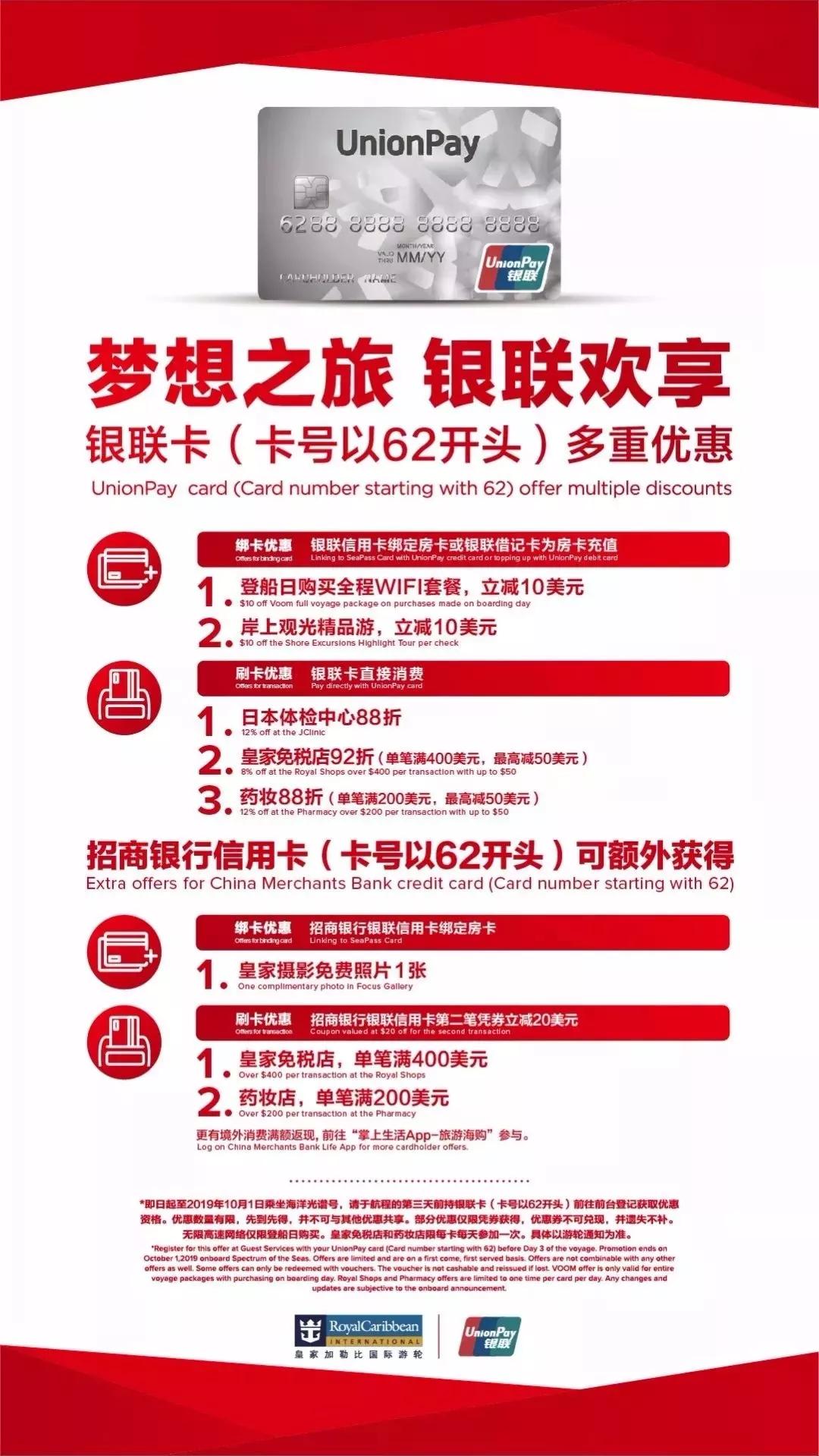 免稅店均支持支付寶和微信支付,現在上船還可以享受銀聯62卡的專屬優惠。