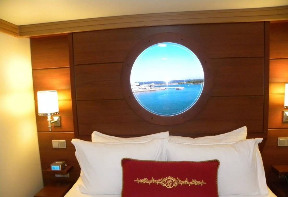 為了彌補(bǔ)住在內(nèi)側(cè)客艙的游客在客艙內(nèi)看不到海景的遺憾,“迪斯尼之夢”號(hào)( Disney Dream)郵輪為內(nèi)側(cè)客艙提供了虛擬舷窗,通過安裝在船外的高清攝像機(jī),游客可以看到船外的實(shí)時(shí)景色,還有孩子們喜歡的動(dòng)畫。