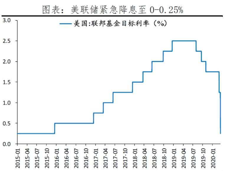 繼3月3日緊急降息0.5個(gè)百分點(diǎn)之后,3月15日美聯(lián)儲(chǔ)再次宣布將聯(lián)邦基金目標(biāo)利率下調(diào)1個(gè)百分點(diǎn)至0-0.25%的區(qū)間,并啟動(dòng)7000億美元的量化寬松計(jì)劃。此外,美聯(lián)儲(chǔ)宣布將貼現(xiàn)窗口利率下調(diào)1.5個(gè)百分點(diǎn)至0.25%,提供日內(nèi)信貸支持,鼓勵(lì)銀行使用資本和流動(dòng)性緩沖,將法定存款準(zhǔn)備金率降至0。
