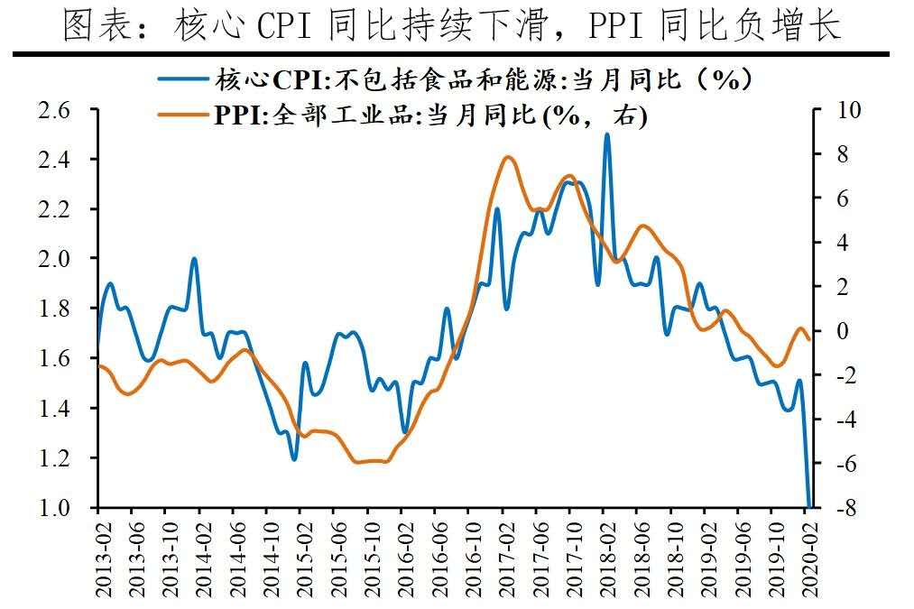 2月PPI同比下降0.4%,環(huán)比下降0.5%,重回負增長。受疫情沖擊,大量企業(yè)停工停產(chǎn),需求下滑,PPI同比由正轉(zhuǎn)負。但是醫(yī)療防護物資需求上升,同時因原材料價格上漲、物流成本上升等因素,2月醫(yī)藥制造業(yè)價格環(huán)比上漲0.3%,其中消毒產(chǎn)品價格上漲14.8%,衛(wèi)生材料價格上漲1.5%。受國際原油價格大幅下降影響,石油和天然氣開采業(yè)價格由上月上漲4.3%轉(zhuǎn)為下降11.0%,石油、煤炭及其他燃料加工業(yè)價格由上漲1.8%轉(zhuǎn)為下降4.4%。