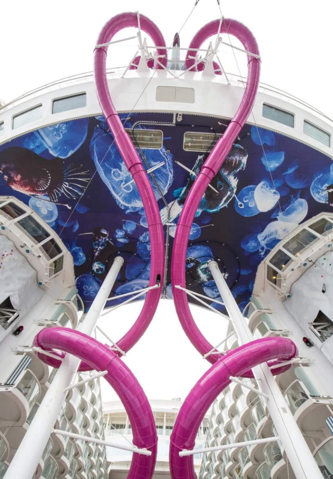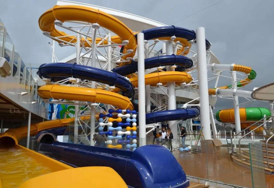 “海洋和諧號”是第一艘考慮到滑水道設計的皇家加勒比郵輪。2016年1月,皇家加勒比在“海洋自由號”上進行滑水道測試,然后在海洋和諧號上實現。