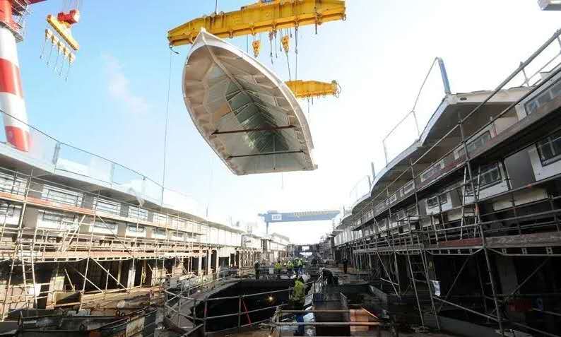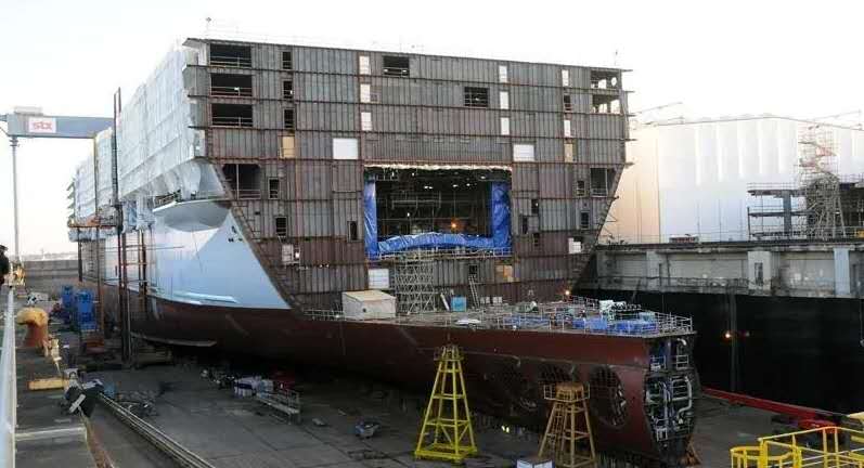 作為造船人,對最大郵輪的偏好是不言而喻的。因為大是受到很多因素限制的,有技術上的,現有規范方面的,也有設備條件和自然條件的限制。所以,海洋綠洲級郵輪,只在芬蘭土爾庫的船廠(現在的MEYER Turku)和STX法國船廠(STX France)(現在的法國大西洋船廠Chantiers de l’Atlantique)建造過。著名的德國邁爾船廠(Meyer Werft) 由于位于埃姆斯河下游,2002年9月之后船只可以通過的水深才達到8.50米,寬度為63.5米。而海洋綠洲級郵輪的最大寬度為66米。法國大西洋船廠為了建造海洋綠洲級郵輪,也專門添置了設備。