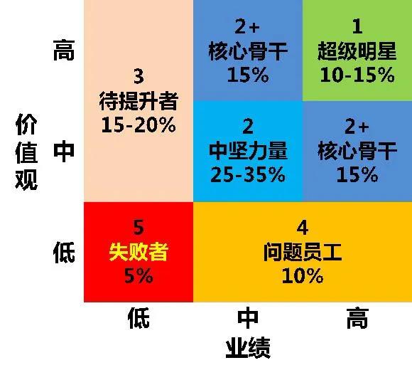 5類人員:業(yè)績和價(jià)值觀都不達(dá)標(biāo)者——要明確淘汰與人員調(diào)整計(jì)劃。