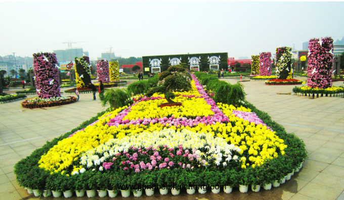 為方便市民登山賞菊,千佛山景區以正門、東門為起點,以東上山路為主要觀賞路線,經茱萸園、桃園、梨園、文昌閣、歷山院等景點,一直延伸至山頂賞菊閣,沿途大面積片植千頭菊6000余平方米,并將歷山院作為集中展示區,展示10余組造型各異的扎菊供市民觀賞。同時,還在正門牌坊廣場、歷山院內設置攤位銷售菊花產品。