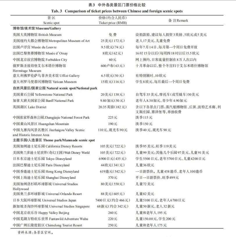 (1)景區門票價格總體而言并不算太高,與國際上同類景區相比,基本持平;