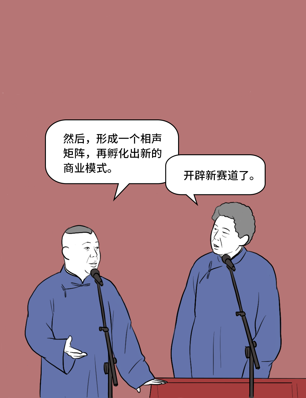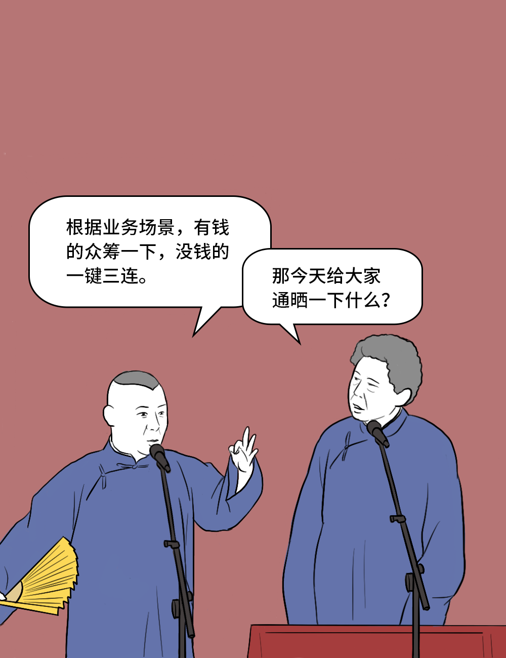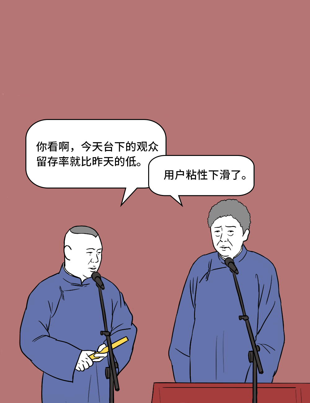 這幾年不知道怎么了,互聯網從業者們總喜歡造一些奇奇怪怪的新詞。 比如頂部不叫頂部,叫頭部; 比如需求不叫需求,叫痛點; 比如切入點不叫切入點,叫抓手… 都是中文,有時候就是看不懂,總結起來,就是好話不能好好說。 今天,我們就開個腦洞: 如果郭德綱和于謙是互聯網從業者,他們會怎么講相聲——
