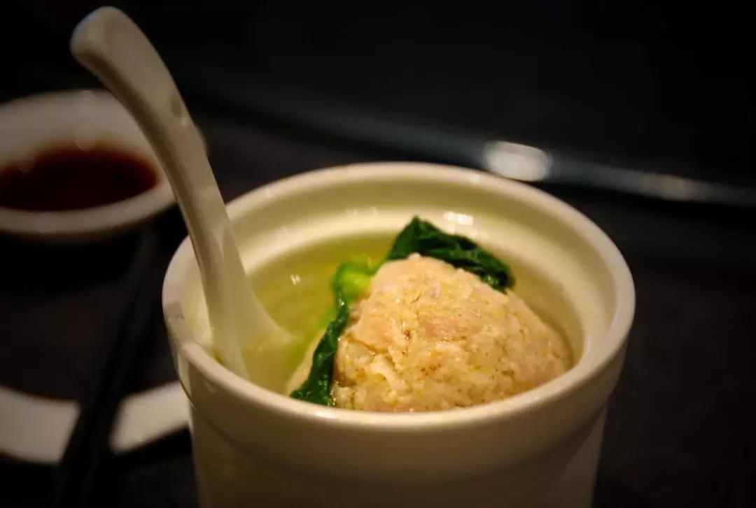淮揚菜中揚州獅子頭是必點之物,湯比較有油,獅子頭很入味,肉是嫩而不硬,微甜入口。做揚州獅子頭,有幾個標準是一定要遵守的,不然是做不象的。主要原料是蟹肉和用豬肉斬成細末做成的肉丸。