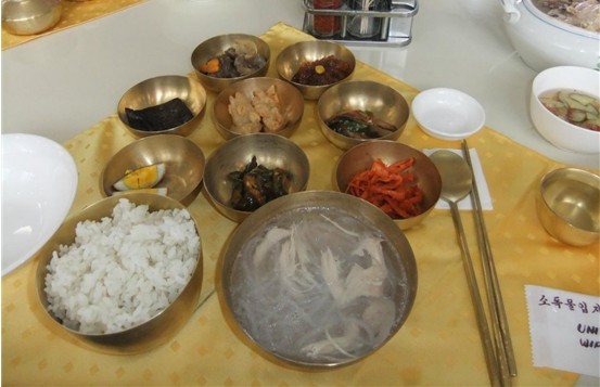 朝鮮的美食與韓國相似,有泡菜、人參雞湯、石鍋拌飯、朝鮮涼面等。朝鮮雖然物資匱乏,但是團餐也會有雞肉、豬肉、豆制品、炸魚、各種泡菜和啤酒、碳酸飲料等。在開城游覽時還會品嘗著名的“銅碗飯”,這在朝鮮絕對是高檔次的“大餐”了。此外,游客還可以自費品嘗當地特色美食,如朝鮮冷面20元人民幣/碗,人參雞280元人民幣/份。