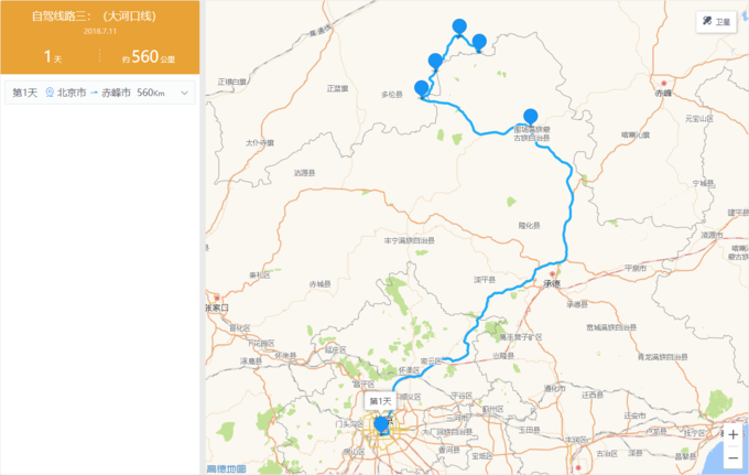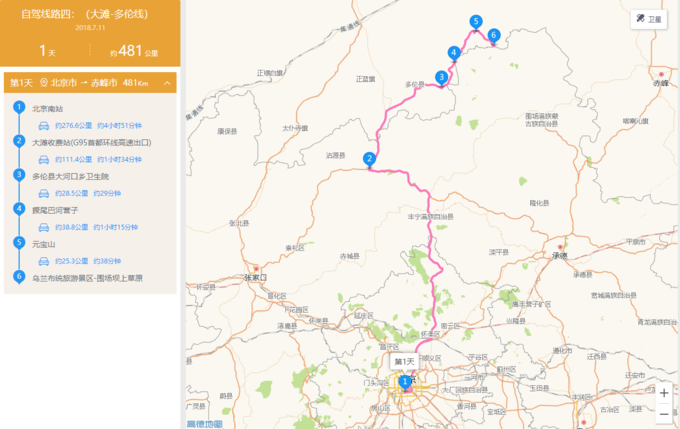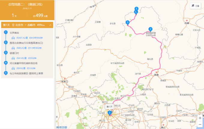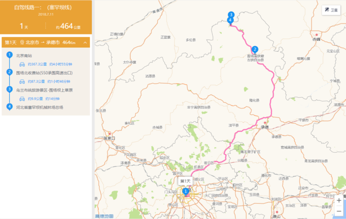 北京—懷柔—豐寧上高速—大灘下—多倫南出—大河口—撅尾巴河村—烏蘭布統景區售票處西站—元寶山—烏蘭布統