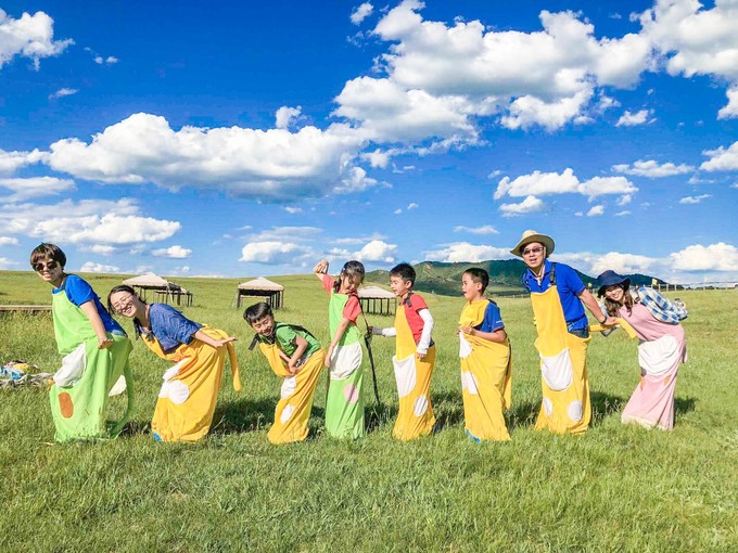 四方綠茵場,看不到邊際,望不到觀眾席;趣味草原運動會,滑沙、拔河、袋鼠跳、鴻運彩球、碰碰球……我沒想到,在沒有圍欄的草原踢球是這樣的酣暢淋漓;我沒有想到,在草原上放風箏只能感嘆線不夠長;我沒想到,在草原還能玩這么多游樂項目。這里簡直就是一個草原迪士尼,兒童的天堂樂園,甚至連大人也能在這里找回童年的樂趣。