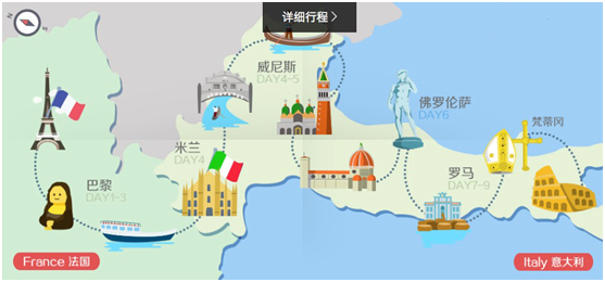 達人設(shè)計思路:此條線路的城市法國和意大利最經(jīng)典的城市,如果你首次前往法意,選擇這個玩法是最合適的。巴黎進,羅馬出,機票價格便宜,中途經(jīng)過時尚之都米蘭,水城威尼斯,文藝復(fù)興之都佛羅倫薩。