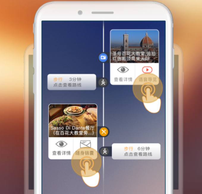 4、智能導(dǎo)游:除去智能導(dǎo)航,我們的智能導(dǎo)游早已把經(jīng)典景色的特色制作成語音,您抵達之后可以聽聽故事和歷史講解,避免跟團的著急和擁擠,景點的停留時間隨你心意。伴隨著只能導(dǎo)游的還有錦囊妙計,點開告訴你如何退稅、如果買票等等當(dāng)?shù)氐木唧w信息。