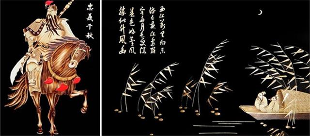 由河北省民間工藝美術大師楊丙軍葦編藝術創作室制作的蘆葦畫,是用白洋淀蘆葦制作的工藝畫,畫面本色天然,色澤淡雅樸素,制作考究精美,具有濃厚的水鄉特色。尤其是那些人物和動物畫,手法細膩,清新古樸,形態逼真,栩栩如生,大有呼之欲出之感。代表作有《漁歌唱晚》、《月上船頭》、《荷花圖》、《垂釣》、《漁家姑娘》、《鐘馗》等。曾榮獲“首屆中國民間藝術博覽會”金獎、“首屆河北省旅游紀念品設計大賽”銀獎。作品曾先后出口到日本、韓國、新加坡、加拿大、美國、英國等國家。