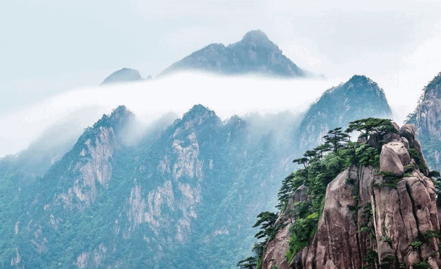一座不在五岳之中的山,卻集泰山之峻、華山之險、峨眉之秀、雁蕩之奇于一身,又兼有遒勁盤曲的蒼松、奇巧別致的怪石、翻騰洶涌的云海、常年不息的溫泉,原本默默無名的黃山,就這樣以包羅萬象卻自成一體的豐富,從安徽南部的煙雨迷霧中,走入文人的詩詞文章,進入萬千大眾的眼界中。