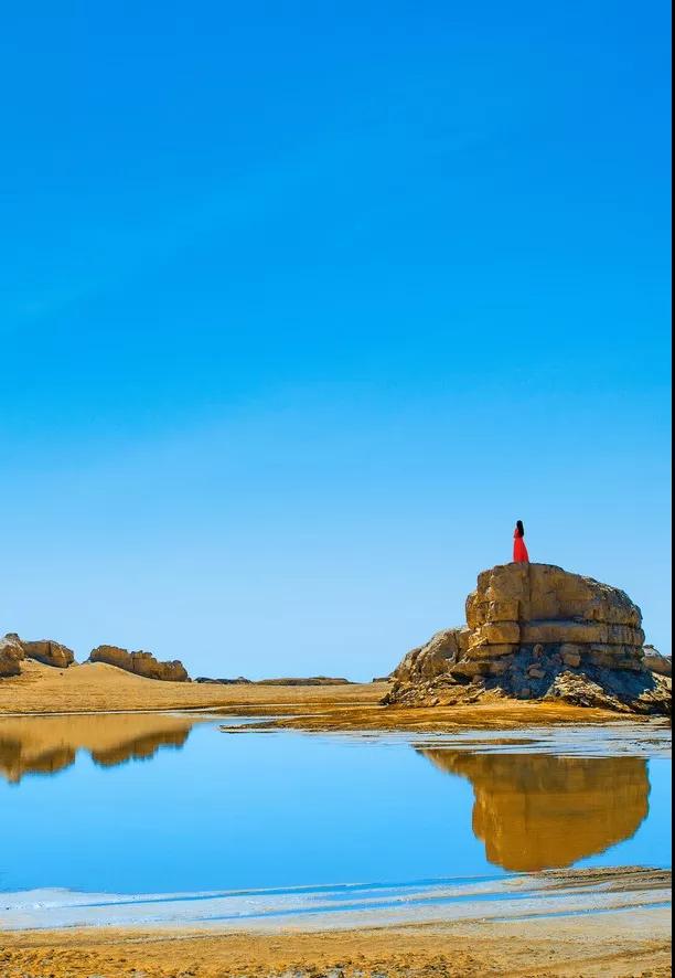 這是世界上唯一一處水上雅丹地貌,因其位置較偏僻,即使是當(dāng)?shù)厝艘部赡懿恢趺催^(guò)去,所以至今仍是一片未開發(fā)的處女地,鮮少有人涉足。這立于汪洋之上的雅丹地貌群經(jīng)過(guò)上千年的風(fēng)雨殘蝕,如同遨游大海顯露脊背的群鯨,湖岸邊高大的鯨背是天然的觀景臺(tái),極目遠(yuǎn)望,西邊是高低錯(cuò)落的水上雅丹地貌群,有的如策馬揚(yáng)鞭,有的如奔馳的駱駝,有的像婀娜多姿的女子,魔幻而神秘。以清澈透明的藍(lán)天為幕,參差錯(cuò)落的雅丹地貌與碧波交相輝映,天上鴨鳴雁啼,水中波光粼粼,這一望無(wú)際的荒漠中憑空而出了一片”汪洋“,只有親身看過(guò)這一片汪洋上的鬼斧神工之作,才會(huì)明白為它為什么會(huì)被人稱為“魔鬼城”。