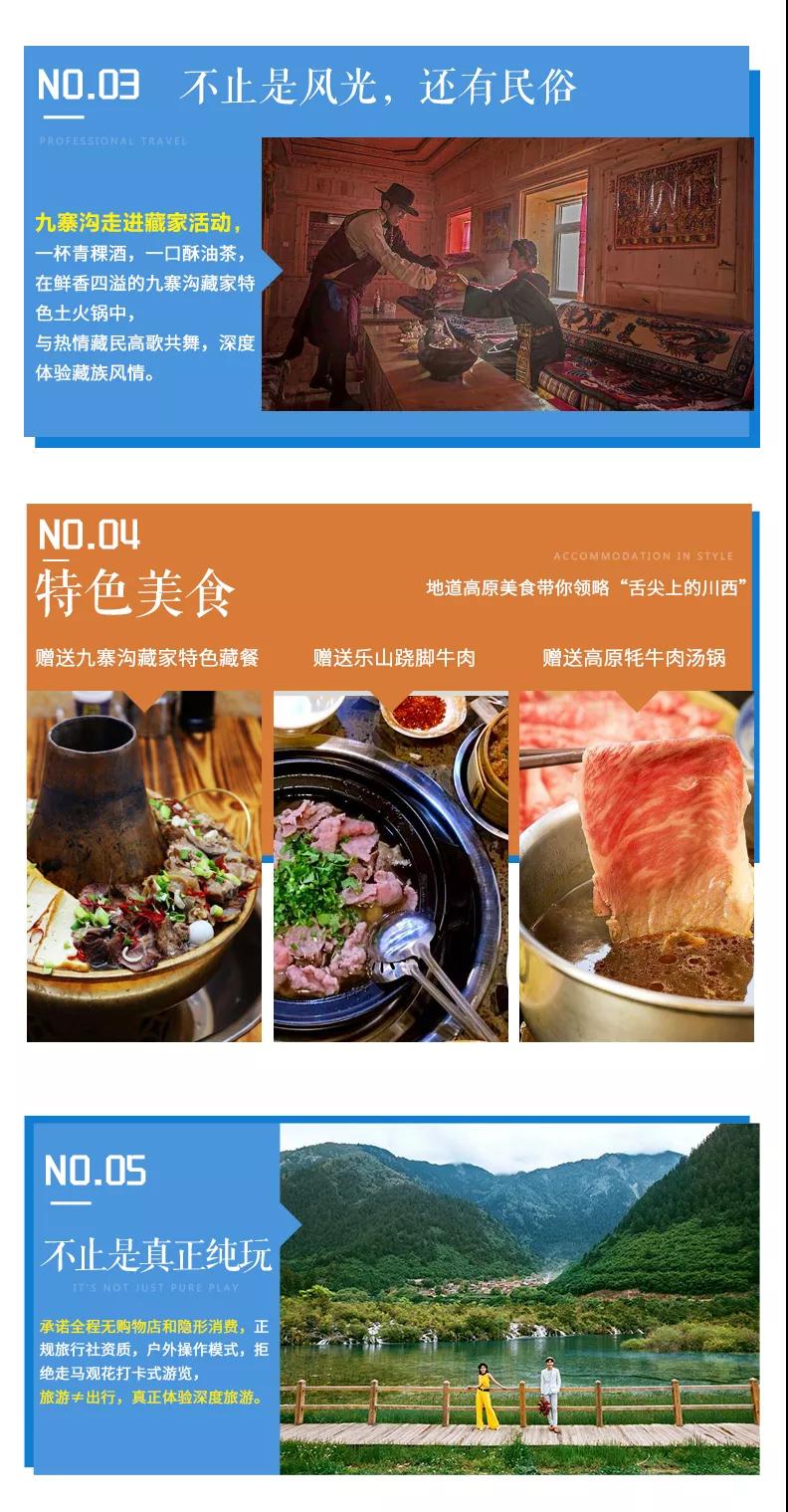 (1)贈送阿壩州特色牦牛湯鍋,樂山蹺腳牛肉,九寨溝藏家特色藏餐;