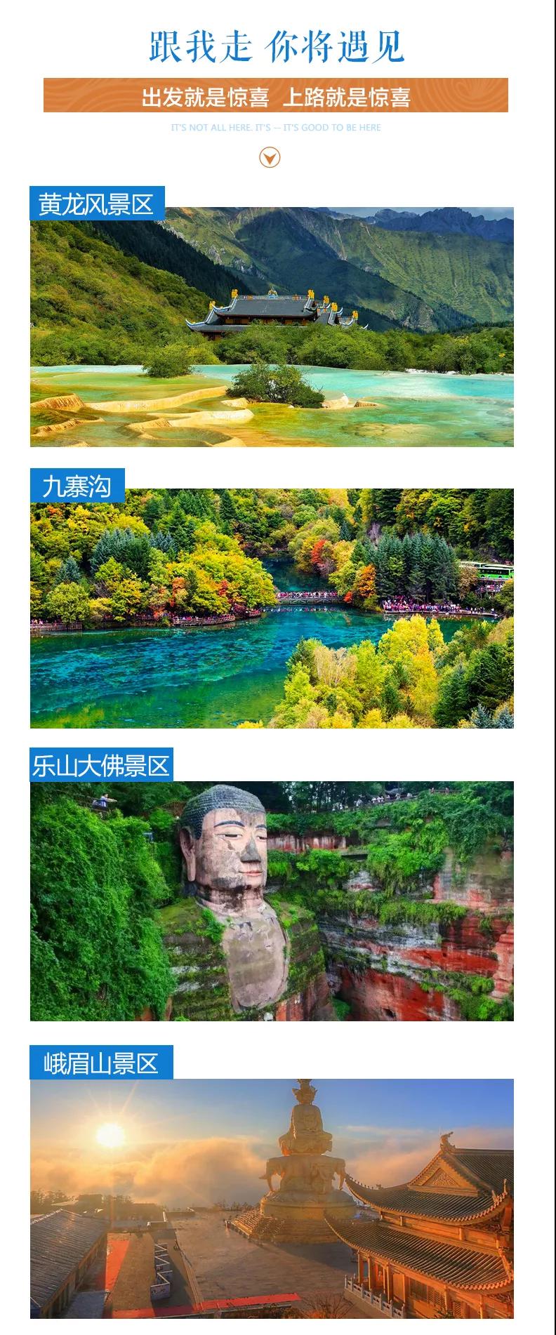 九寨溝門票、黃龍風景區(qū)門票、峨眉山首道大門票、樂山大佛門票、熊貓樂園門票、大佛禪院門票;
