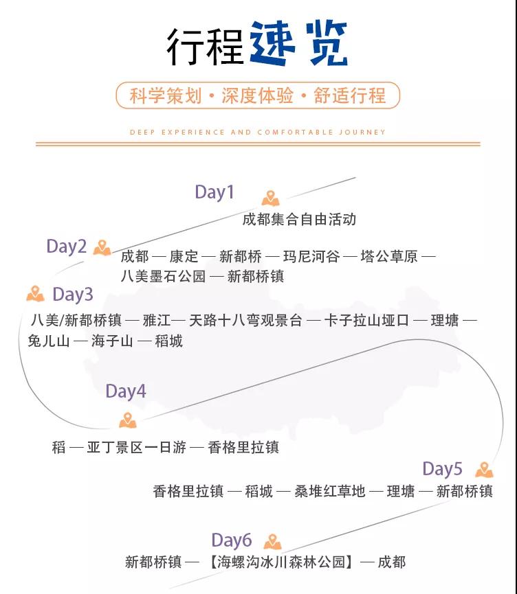 新都橋鎮 — 【海螺溝冰川森林公園】 — 瀘定 — 成都