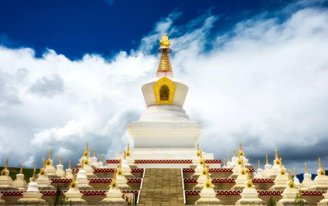 有時間的話大家可以去參觀【稻城白塔】,稻城白塔也稱“尊勝塔林”,是康南地區唯一以白塔為主題的公園。塔的基座安放著一排排的轉經筒,以供藏民虔誠膜拜,在這里學著藏民一圈圈轉著白塔,祈禱平安喜樂。