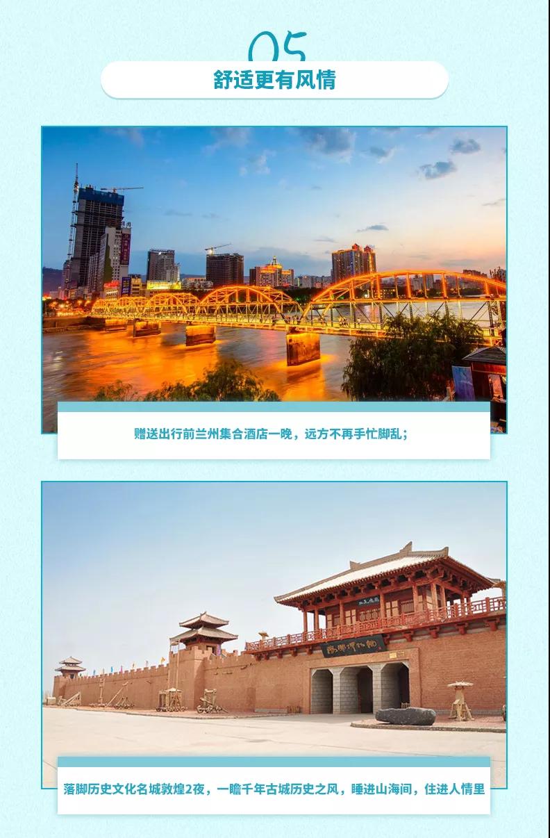 7、贈(zèng)送:贈(zèng)送特色敦煌沙漠BBQ;贈(zèng)送貼心禮包旅游三寶、魔術(shù)頭巾;贈(zèng)送蘭州市區(qū)接機(jī)/接火車服務(wù),23點(diǎn)后由于運(yùn)管規(guī)定不能接機(jī)/接站,敬請諒解。(贈(zèng)送項(xiàng)目不用費(fèi)用不退)