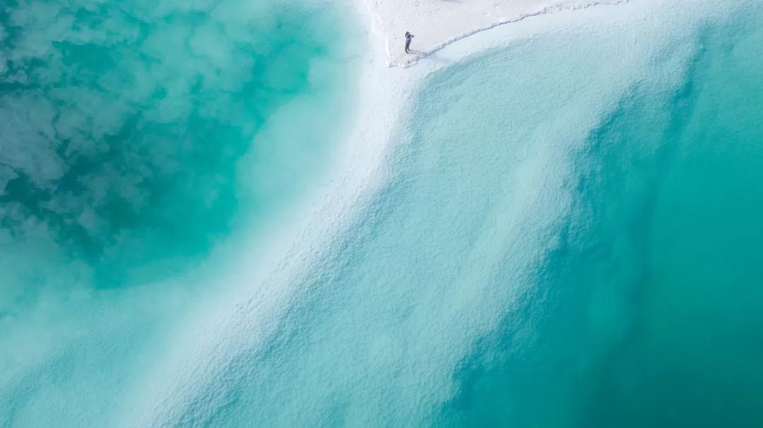 東臺吉乃爾湖的神奇之處在于一條泥路將湖水一分為二,一半是純正的蒂芙尼藍(lán),一半是含鹽量極高的純粹綠;乃爾湖岸邊盡是覆蓋著的白色結(jié)晶,湖周圍是大片的雅丹地貌,搭配上顏色干凈到極致的湖水、西北特有的廣闊無垠的天空,純粹而強(qiáng)烈的視覺沖擊,這方圓百里大漠戈壁無人區(qū)的珍寶明珠,這只屬于大自然的神秘顏色,讓你仿若來到了世界的盡頭,讓你感受一種歸于自然的內(nèi)心平靜。