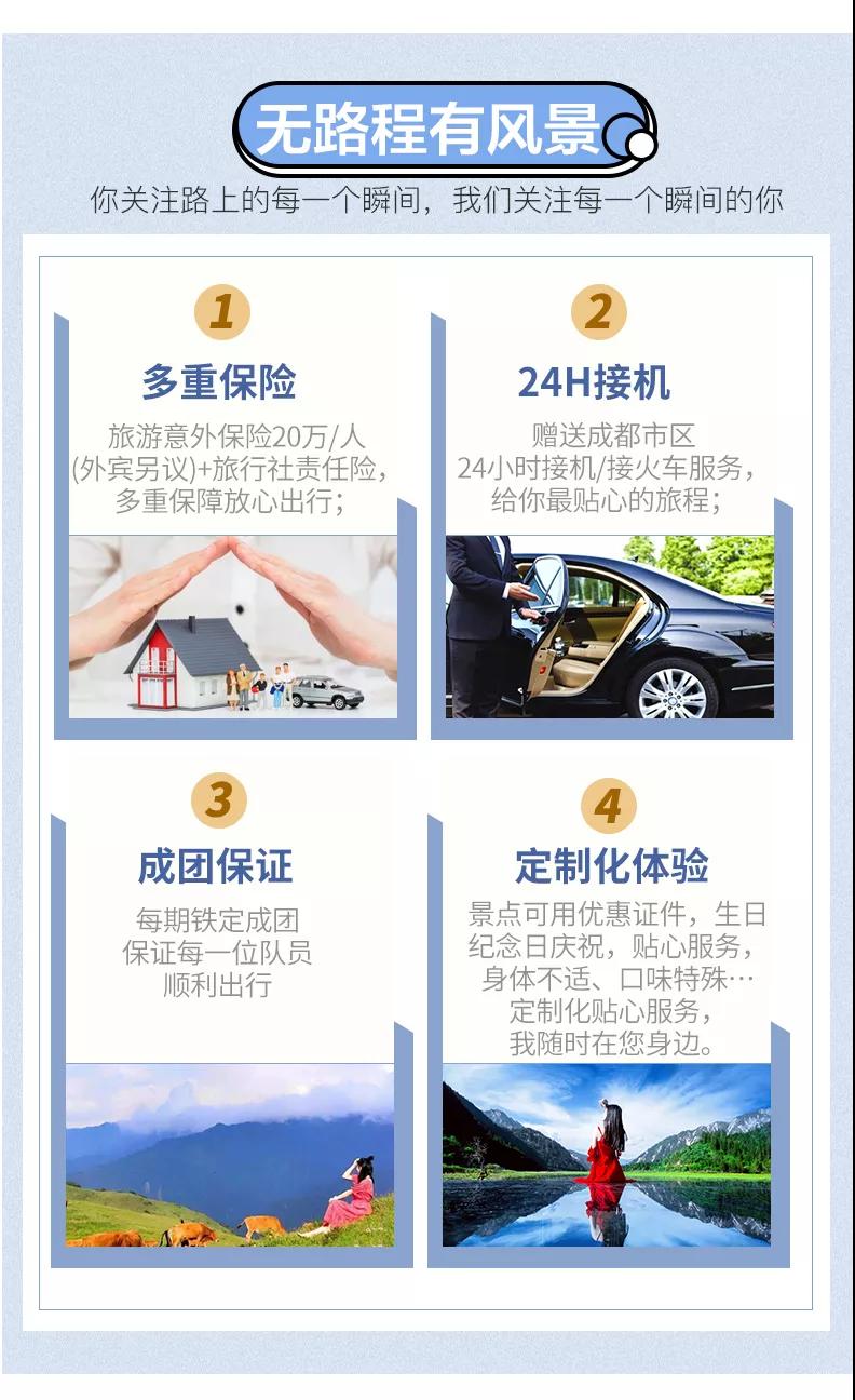 1.門票:各地往返成都的大交通;請游客在預(yù)報名我方確定門票預(yù)訂成功后再預(yù)訂大交通機票車票,以免因景區(qū)限流造成不必要的損失,敬請諒解。