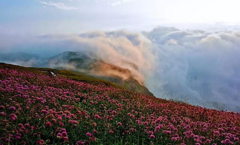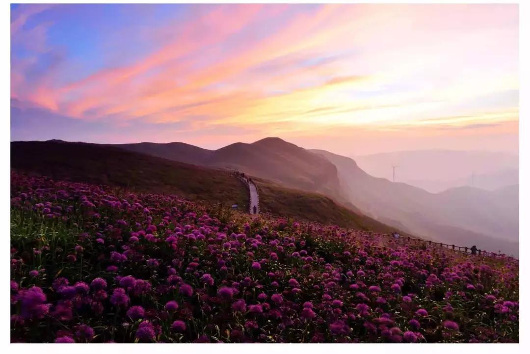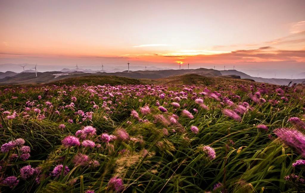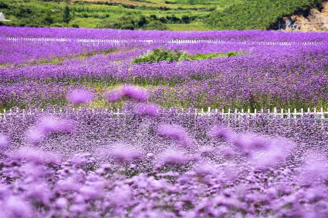 今天我們驅(qū)車來到云上花海的韭菜坪山腳下,為了能欣賞到韭菜坪最美的日出景象,我們把重頭戲放到了第二天一早,而今天大家在山下游玩拍照,這里盛開著一望無際紫色的馬鞭草 ,也可以上山去拍一個(gè)日落霞光哦。