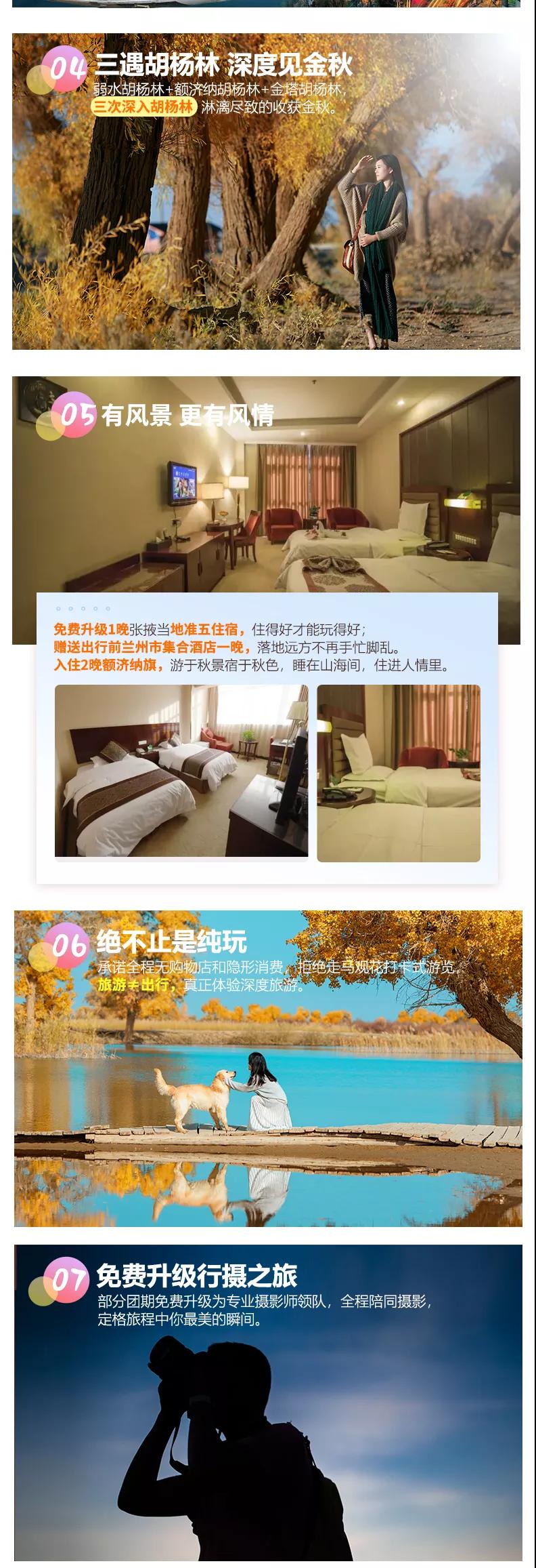住宿:免費升級1晚張掖當?shù)販饰寰频辏m州、嘉峪關(guān)入住當?shù)販仕木频辏~濟納入住舒適干凈雙人標間;西北經(jīng)濟條件有限,酒店較南方地區(qū)略差,如未達到您的預(yù)期,望您諒解。